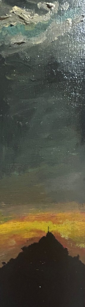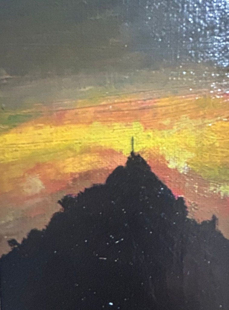 Tantas veces he visto esa montaña piramidal, con los brillos del crepúsculo tras ella, que podría pintarlo con los ojos cerrados (es un decir).