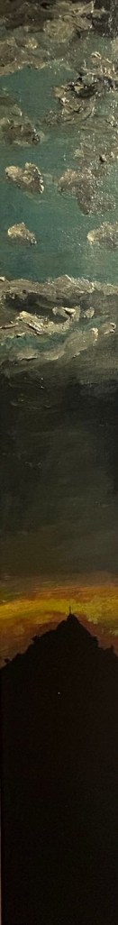 Por cierto, el tamaño extraño del cuadro es debido a que aproveché un recorte de cartón entelado que me había sobrado de otro cuadro, pues hay que aprender a reciclar.