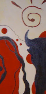Josep M. y David fueron a una boda y les gustó la invitación. Ésta mostraba una bailaora y un toro, y me pidieron que la convirtiera en un cuadro para su mansión de Puigpelat (población del Alt Camp conocida principalmente por ser el origen de una preciosa talla de madera de finales del siglo XIII que representa a la Virgen Maria amamantando a su hijo, llamada Mare de Deu de la Llet, y que actualmente se encuentra en el Museo Diocesano de Tarragona).