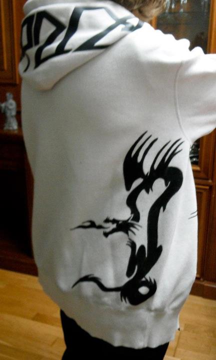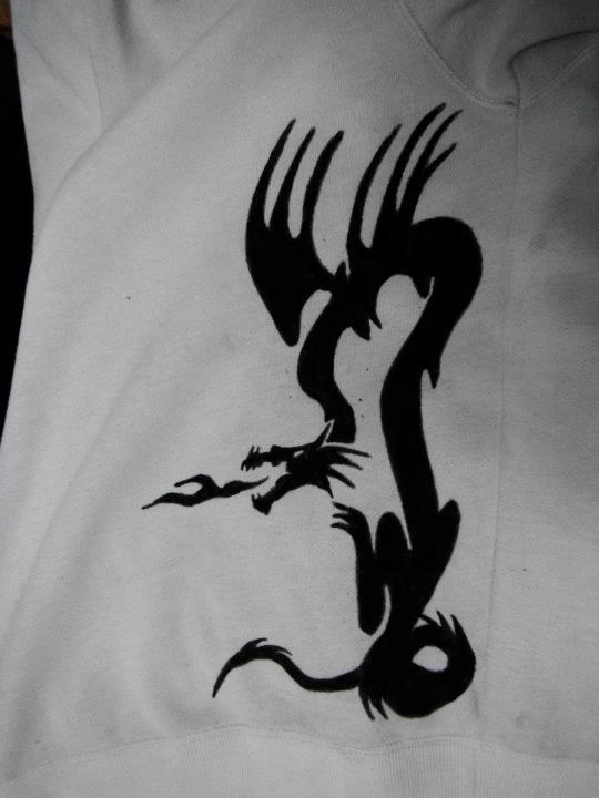 ¡Arréglamelo!, dijo y creo que lo conseguí. A provechando la forma de la mancha le dibuje un dragón rampante… ¡Queda cool! ¿no?