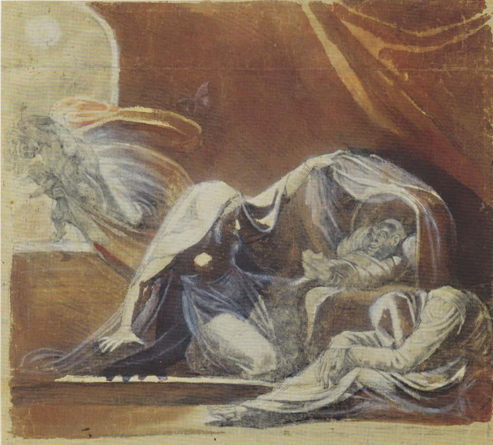 “Hola”, le dijo, “¿qué quieres?”. La aparición no respondió; solo una lágrima resbaló por sus ojos y se esfumó.