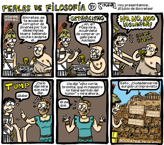 Sócrates murió envenenado y, si nos creemos lo que nos cuenta la tradición, hasta el último momento estuvo charlando tranquilo con todos los que le rodeaban, bromeando, discutiendo como si fuera una tarde cualquiera y no el día de su muerte.