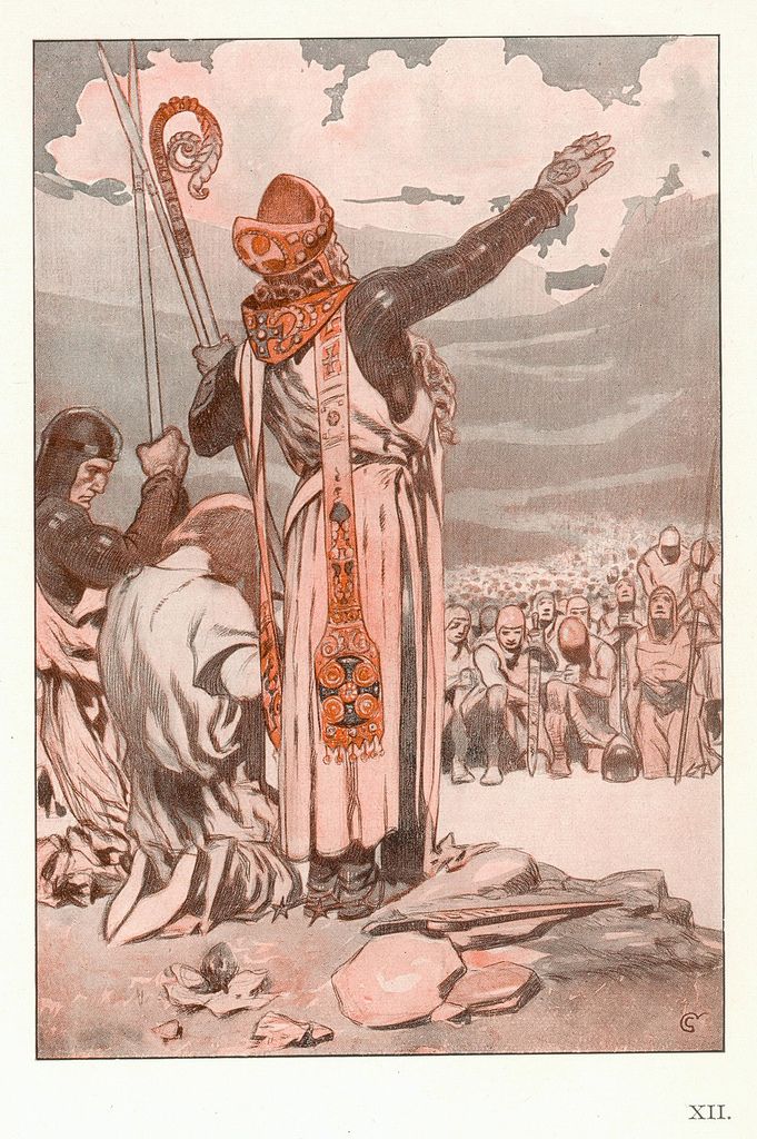 El hecho de atar reliquias y armas, tiene el objetivo de cristianizar la caballería, para que así esté al servicio de la iglesia. El héroe que lleva al pomo de su espada la reliquia de un santo, además de obtener protección, se convierte en un modelo cristiano que puede impregnar toda la sociedad; dentro de esta mentalidad podemos incluir San Bernad, los templarios, el Papa Gregorio VII, el ciclo del Graal, el Perceval de Chretien de Troyes o el tratado caballeresco de Ramon Llull.