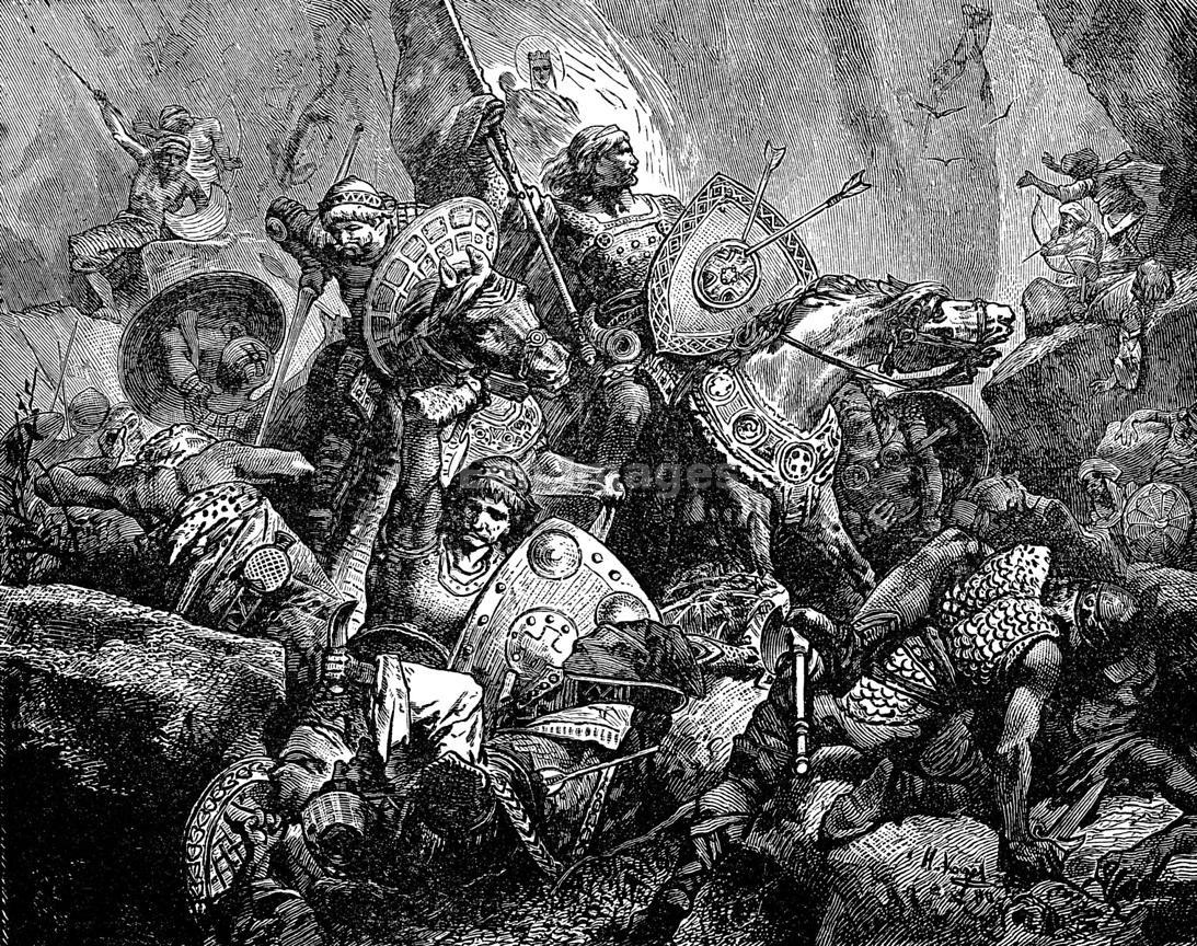 Pero las verdaderas imágenes de poder son las armas y, como he dicho, si estas además son milagrosas, se vuelven más poderosas. La característica principal de Durandal es guardar en su pomo un diente de San Pedro, sangre de San Basilio, cabellos de San Denís y un trozo del manto de la Virgen (En l’orent punt asez i ad reliques: la dent seint Perre e de l’ sanc seint Basilie, e des chevels mun seignur seint Denise; de l’vestement i ad seinte Marie / En el pomo tiene bastantes reliquias: el diente de San Pedro y la sangre de San Basilio, y cabellos de mi señor San Dionisio; del vestido de Santa María también hay allí. Versos 2345 a 2348).