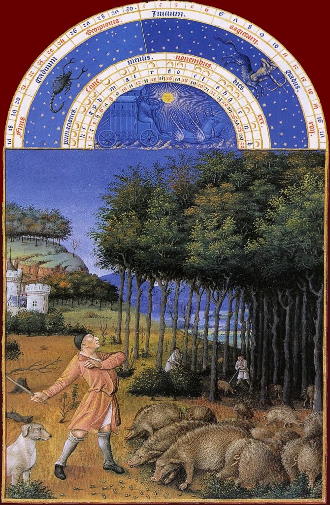 En Les Très Riches Heures du duc de Berry, sin embargo, la imagen mantiene una función preestablecida y pedagógica, pero también tiene otra muy clara: muestra la realidad. Si la imagen representa corresponde al mes de agosto, lo que aparece en el libro pertenece al mes de agosto, ha desaparecido casi todo el simbolismo teológico (incluso pedagógico) y lo que se muestra es la vida real. Parece algo lógico, pero supone un cambio en la concepción artística: Dios está en la naturaleza, pero lo que representa el artista es el mundo humano con sus variaciones a lo largo del ciclo del año.