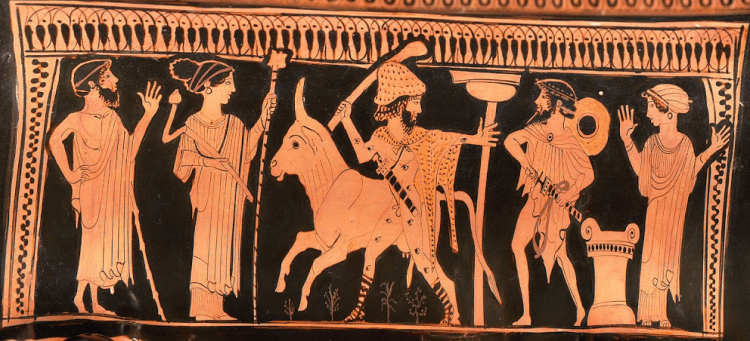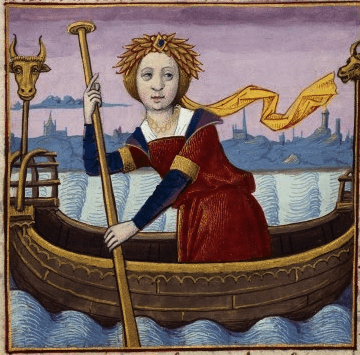 Tras Esquilo encontramos el mismo tema en Herodoto (siglo V aC) quien, como suele hacer habitualmente, busca la anécdota y explica a sus Nueve Libros de la Historia que los fenicios raptaron una tauropárthenos (virgen dedicada al culto al toro) llamada Io, esta quedó embarazada del capitán de la nave y, avergonzada, no volvió a casa de sus padres, por lo que viajó con los mercaderes hasta Egipto.