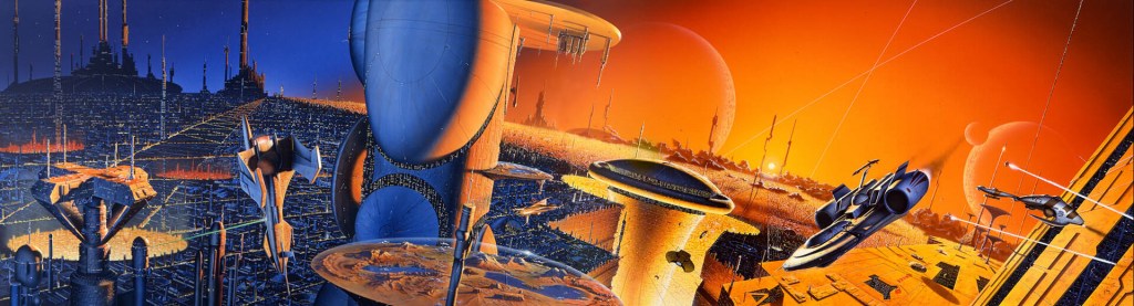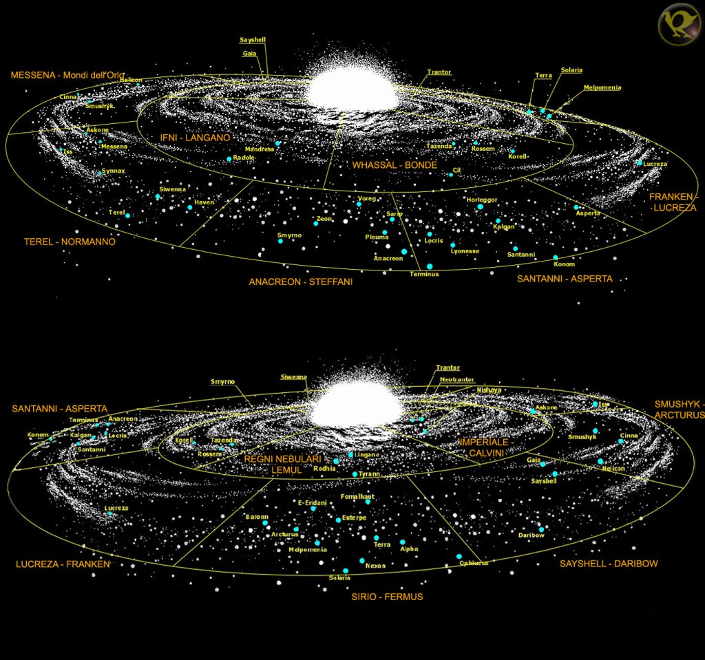 No he querido incluir la precuela sobre la vida de Susan Calvin escrita por Mickey Zucker Reichert (la trilogía I, Robot), pero sí he incluido los relatos de otra trilogía, la escrita por Roger MacBride Allen: Calibán (1993), Inferno (1994) y Utopía (1996). Esta trilogía está ambientada en la época en la que los espaciales y los colonizadores se disputan la galaxia. Los he incluido, pero sinceramente, estos libros aportan poco y son bastante aburridos. A pesar de esto, al menos proporcionan algunos datos sobre los mundos espaciales que Asimov no exploró en profundidad.