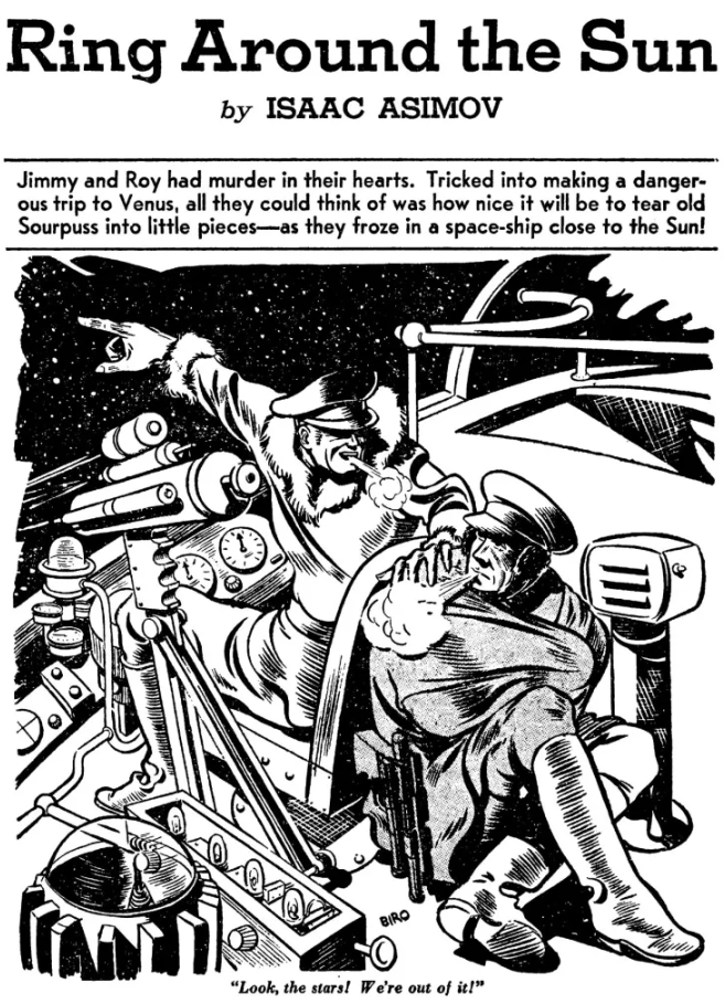 Gregory Powell y Michael Donovan, junto con el robot SPD-13, participan en la Segunda Expedición a Mercurio, financiada por US Robots y por Solar Minerals. (Círculo vicioso, AKA Sentido giratorio)