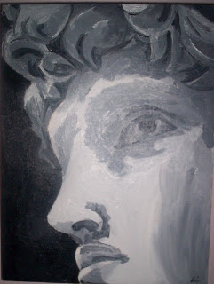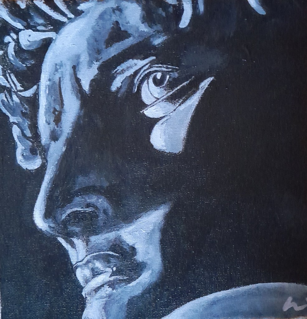 Quizás por eso, cuando decidí hacer dos pequeñas pinturas sobre David, me centré en lo que parecía dividir la atención de quienes lo admiraban. En una de las obras plasmé los ojos, que fueron lo que más me impresionó a mí; y en la otra, el pene, que parecía ser lo que más sorprendía al resto.