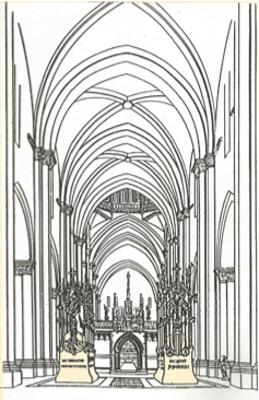 El proyecto presentado por Montaner constaba de dos panteones, ya que el encargo incluía otra tumba para los restos óseos de otros condes catalanes. La intención era colocarlos en el crucero de la catedral.